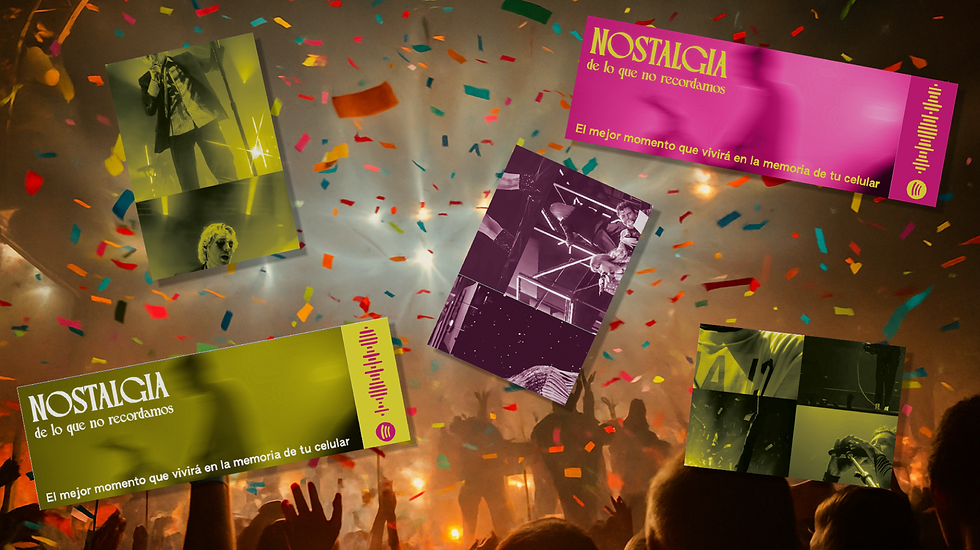 With vibrant colors and a digital aesthetic, it connects the physical world of concerts with online communities, celebrating music and fan culture through an intimate and collectible experience. It's a tangible and sensory reflection of what it means to be part of a group that shares traditions and collective memories, seeking ways to transform them into tangible objects.